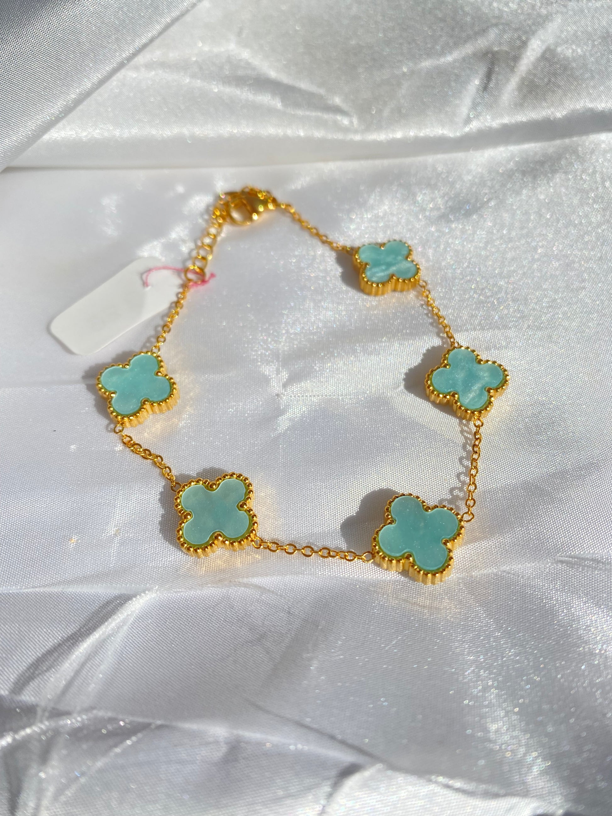 Καλοκαιρινό βραχιόλι με χρυσή αλυσίδα και γαλάζια στοιχεία.