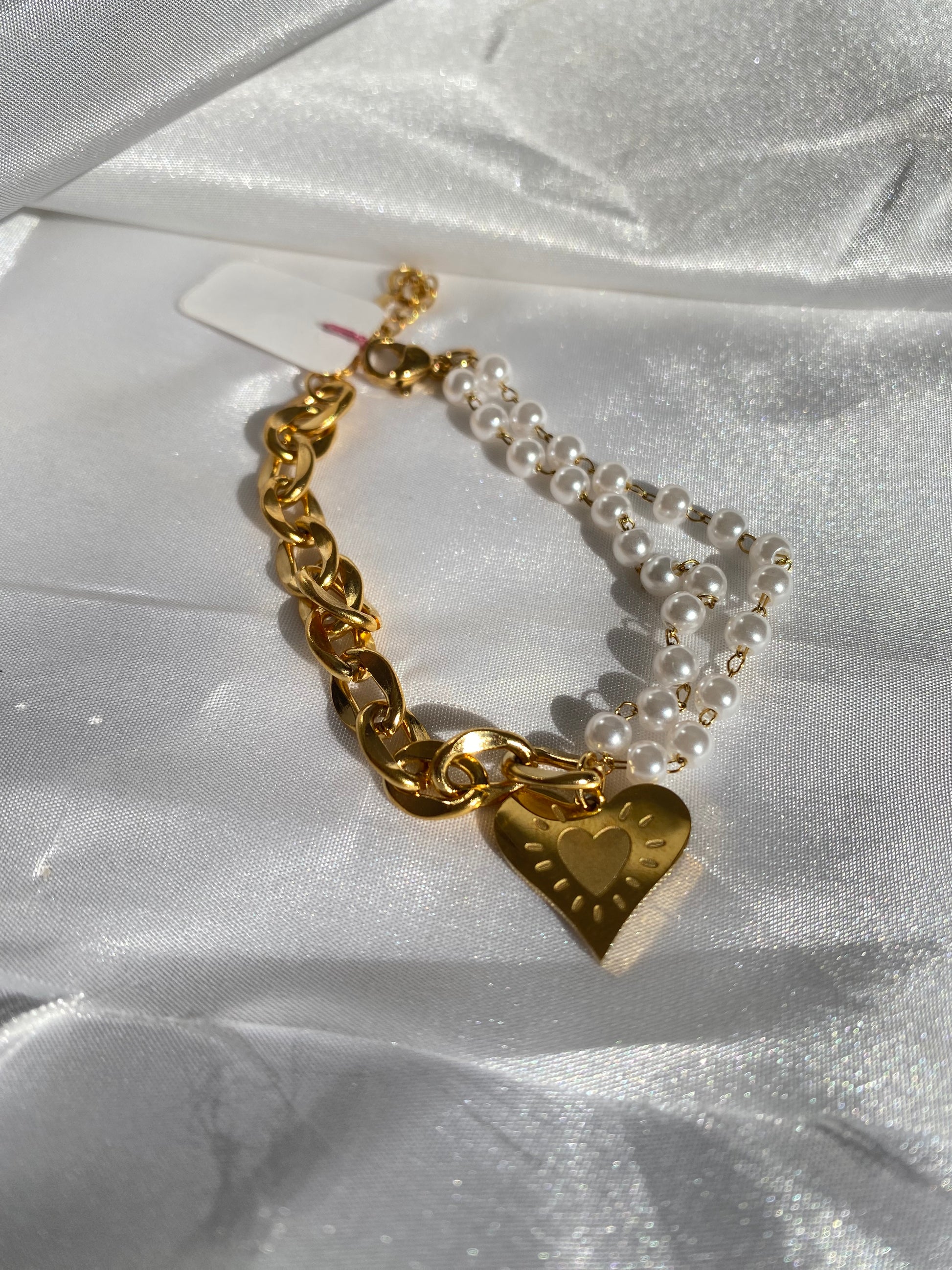 Καλοκαιρινό βραχιόλι με χρυσά και λευκά στοιχεία.