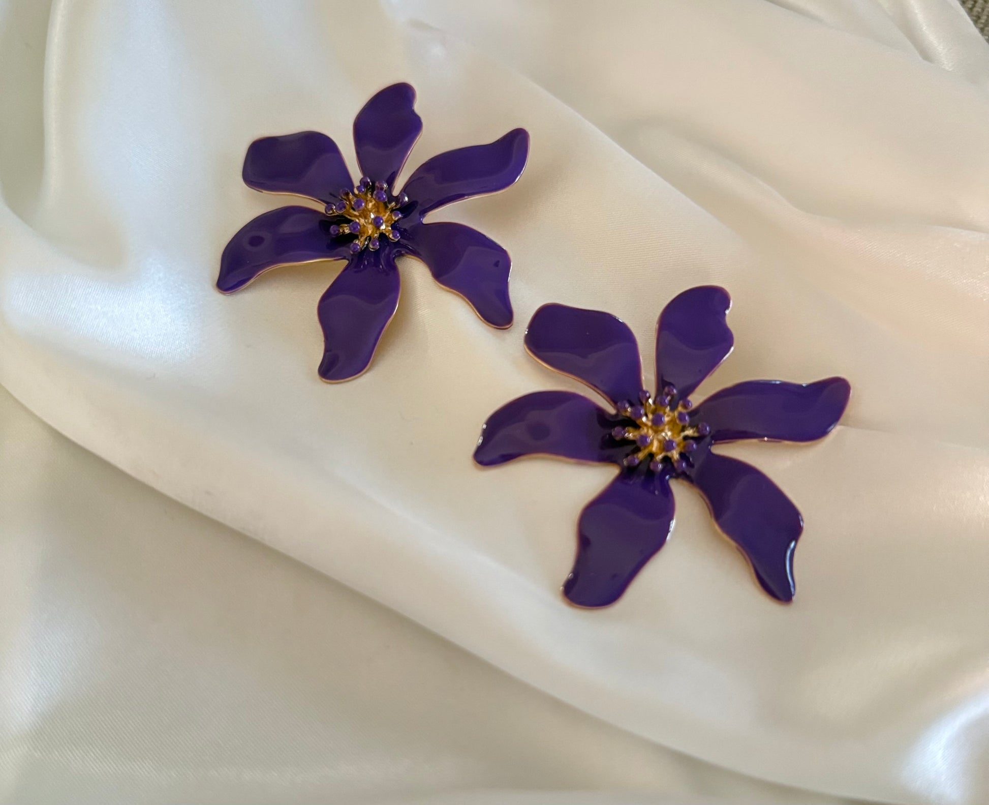 Σκουλαρίκια μωβ λουλούδι από ανοξείδωτο ατσάλι.