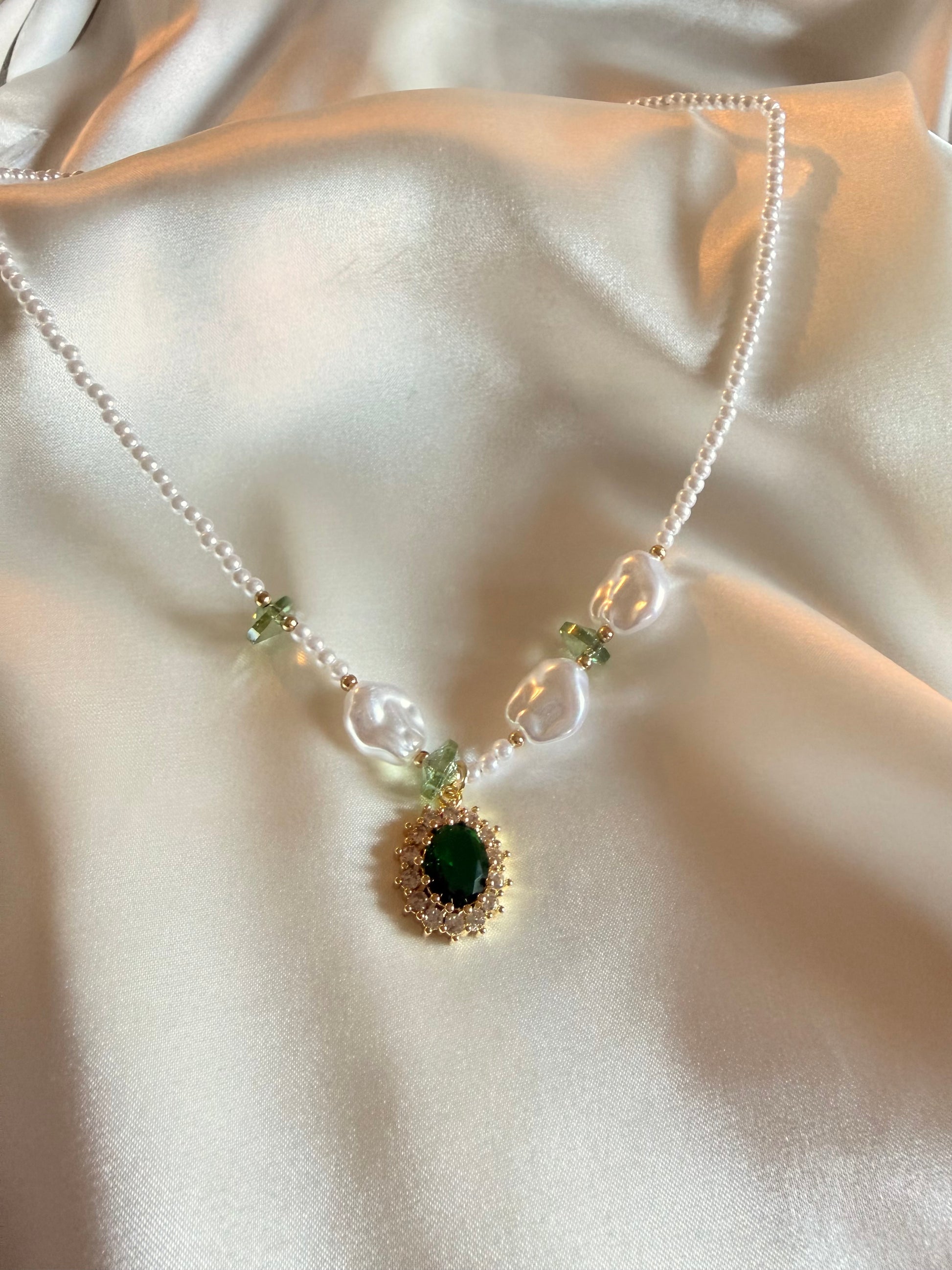 Κολιέ από ανοξείδωτο ατσάλι, πέρλες και ζιρκον.