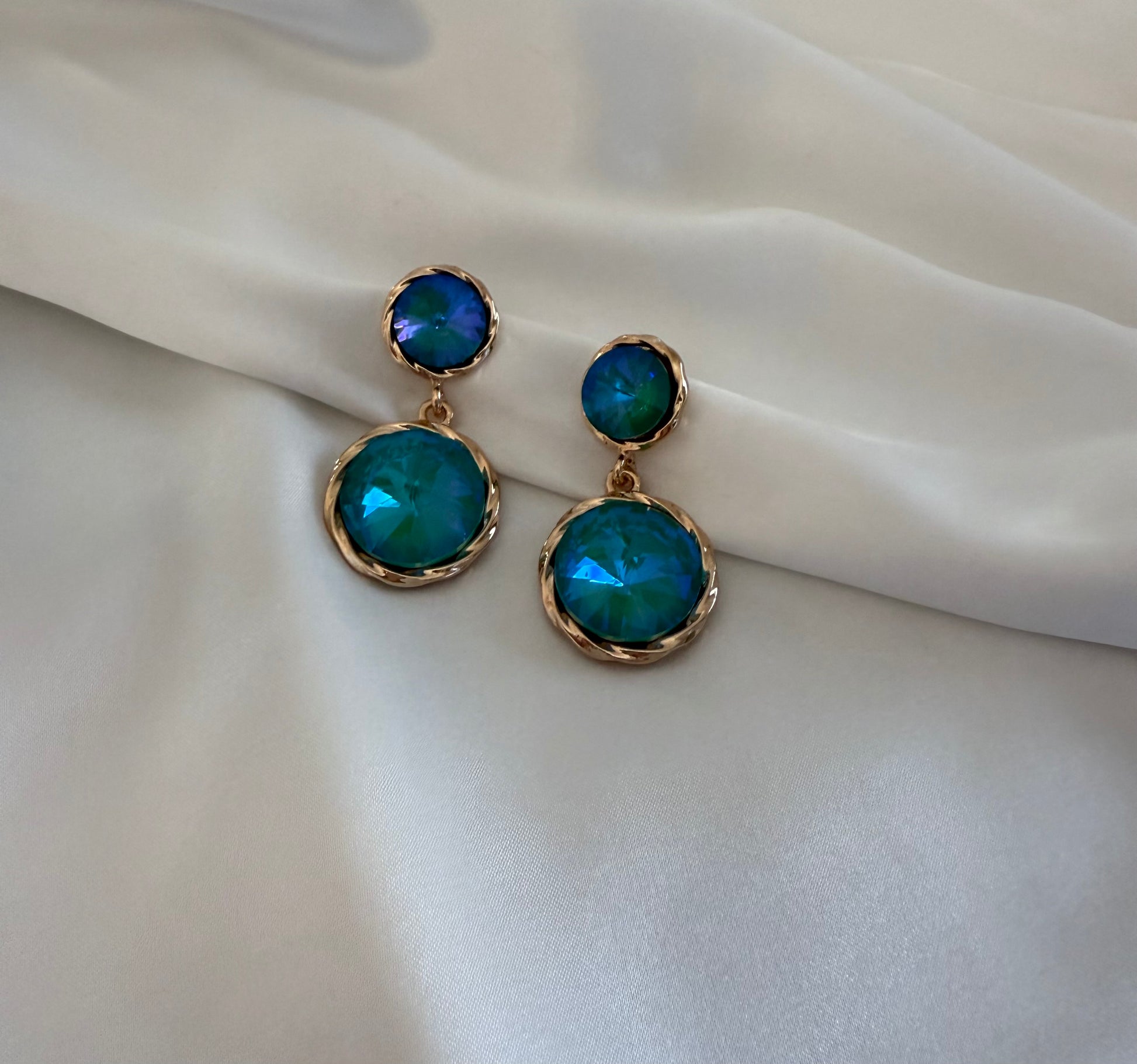 Αναβάθμισε το στυλ σου με αυτά τα υπέροχα πετρόλ σκουλαρίκια από ανοξείδωτο ατσάλι, διακοσμημένα με εκθαμβωτικούς κρυστάλλους Βενετίας. Η έντονη απόχρωση και η λαμπερή υφή τους προσθέτουν μια μοναδική νότα φινέτσας σε κάθε σου εμφάνιση, ιδανικά για καθημερινή αλλά και βραδινή χρήση.