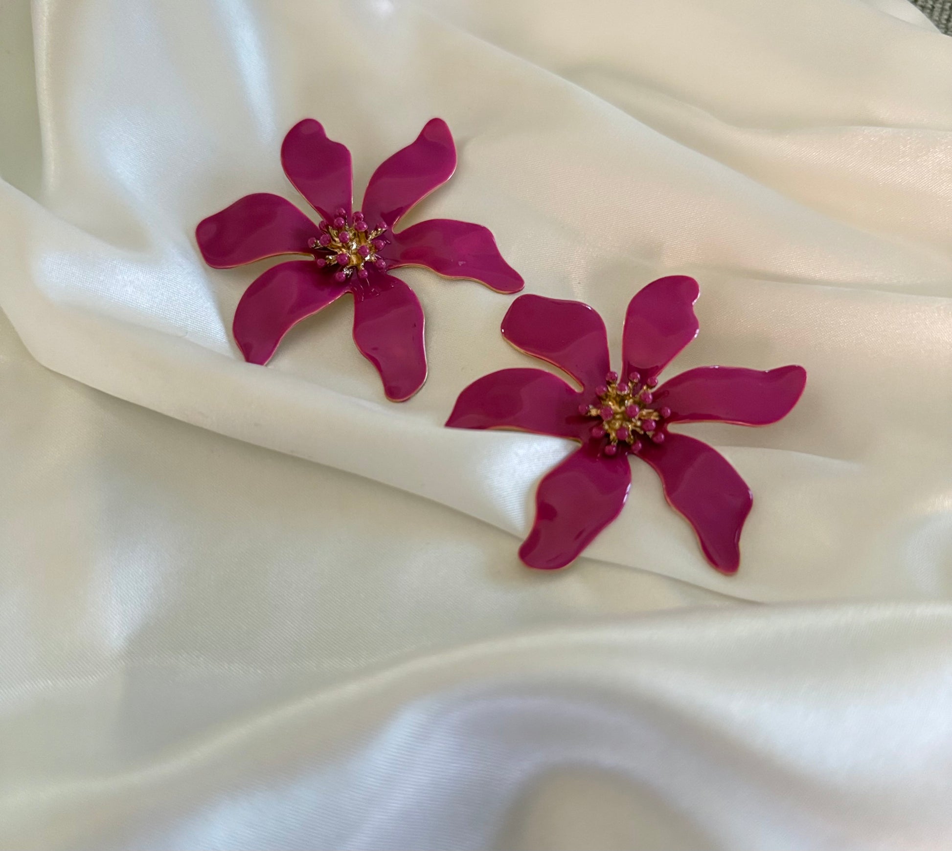 Σκουλαρίκια φουξ λουλούδι από ανοξείδωτο ατσάλι.