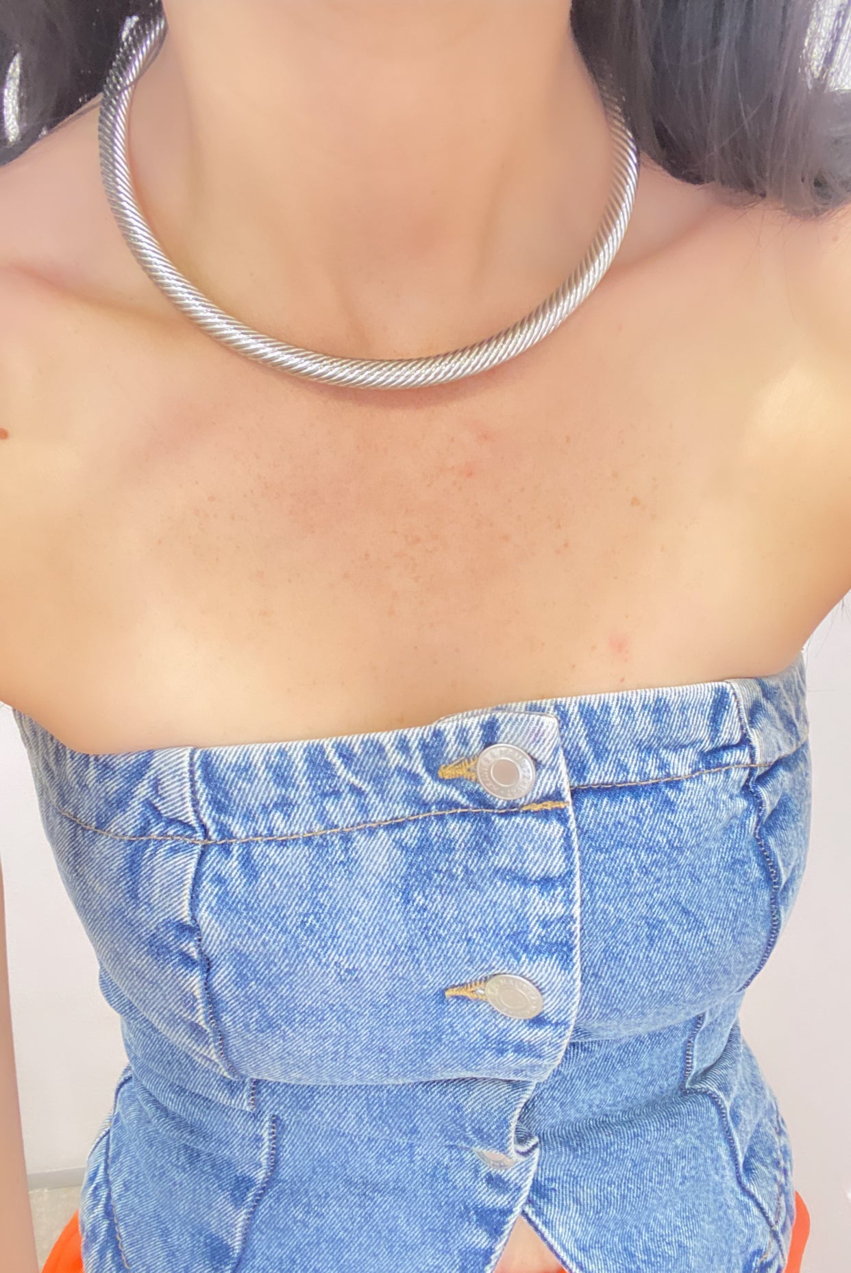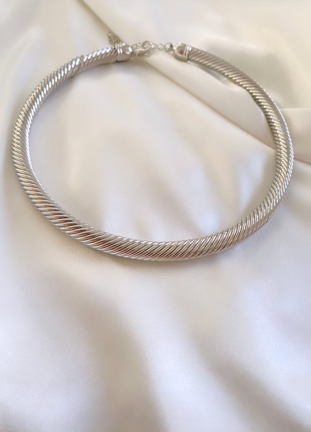 Υπέροχο φουλ μοντέρνο σταθερό κολιέ σε ασημί χρώμα από ανοξείδωτο ατσάλι.