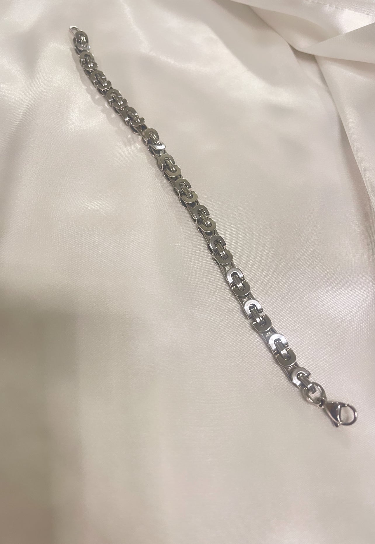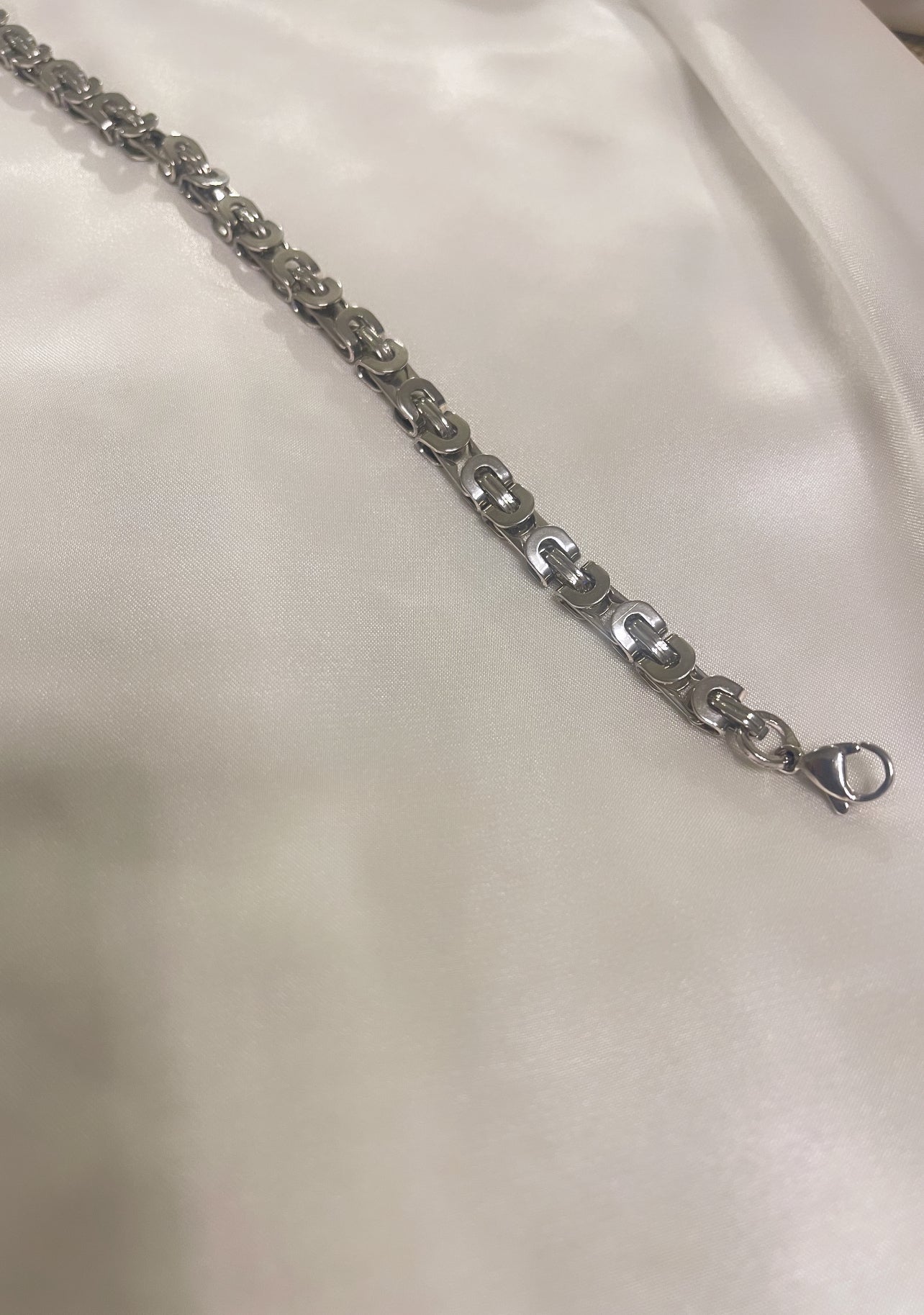 PLOUTONAS man Bracelet - Ανδρικό κόσμημα χειροπέδα από ανοξείδωτο ατσάλι σε ασημί χρώμα. Η ανδρική αυτή χειροπέδα ενώνει τους συνδέσμους της με ιδιαίτερους κρίκους δίνοντας την αίσθηση της fashion επιλογής στο ανδρικό στυλ. Χωρίς μόλυβδο, κάδμιο και νικέλιο.